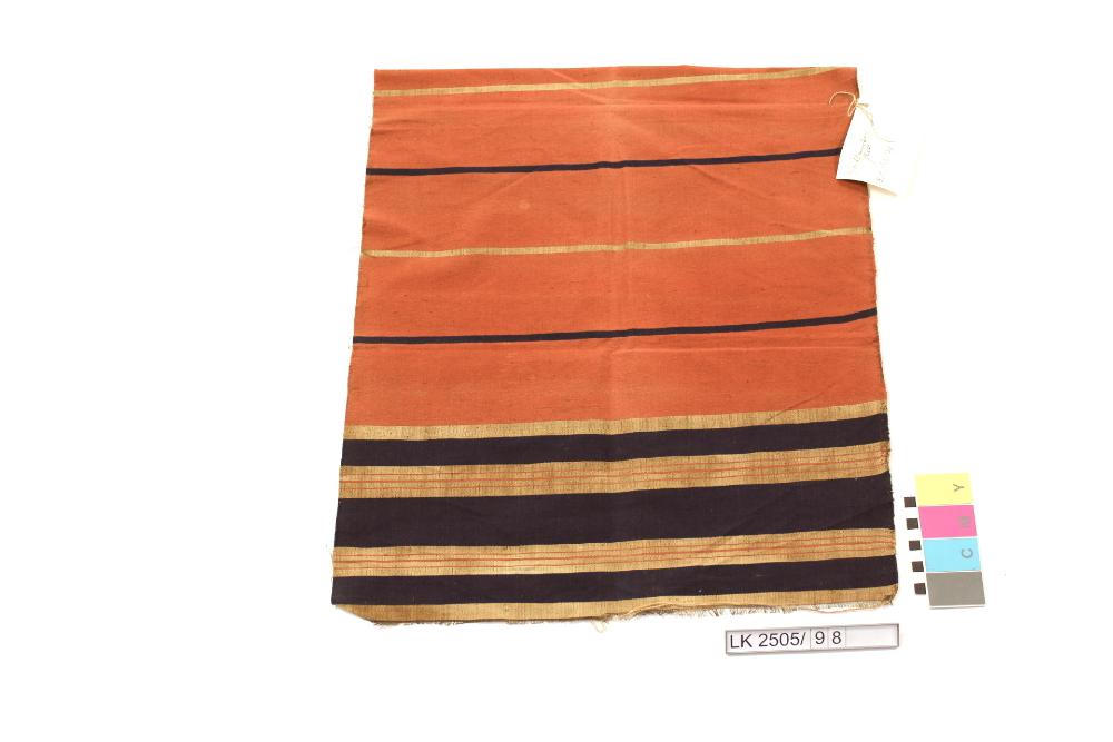 Stoffmuster quergestreift in rot, blau, natur; Muster eines glatten Stoffes; Streifenornament; ev. inspiriert von regionalen Dessins am Balkan;