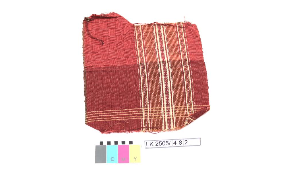 Stoffmuster kariert und gestreift in rot, gelb, blau, weiss; Dekorstoffmuster; figural ornamentiert;