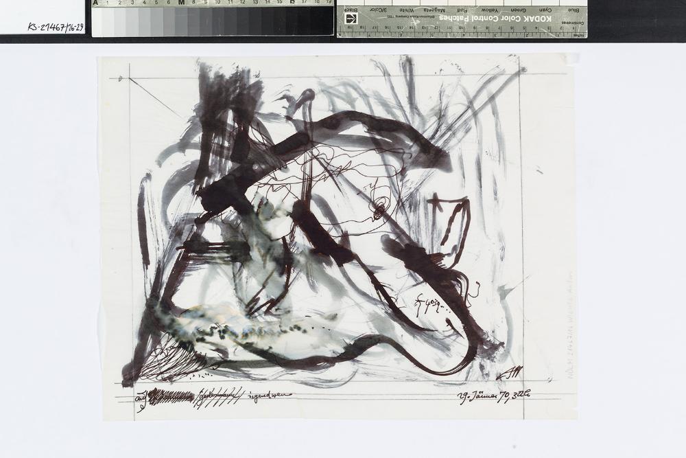 SignaturRecto, monogr. unten rechts: "AW"; Recto, bez. unten links: "auf [durchgestrichen: "jedermann"] irgendwen", dat. unten rechts: "29. Jänner 70, 3.22 h"