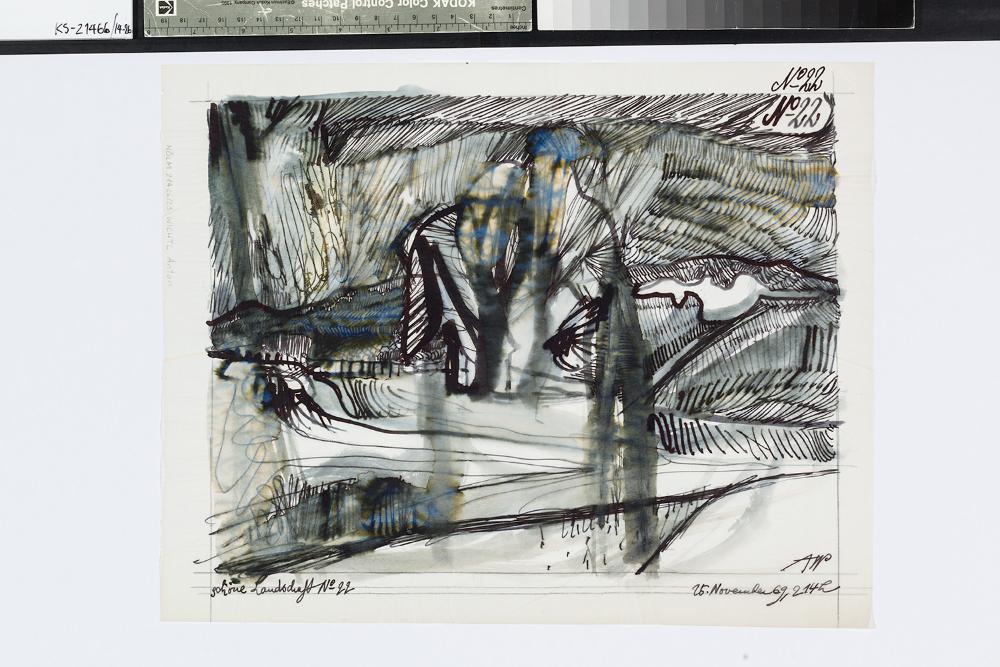 SignaturRecto, monogr. unten rechts: "AW"; Recto, bez. unten links: "schöne Landschaft ? 22", dat. unten rechts: "25. November 69, 2.14 h"; Recto, oben rechts: "? 22", "? 22"
