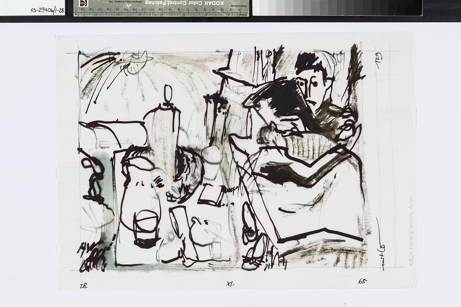 SignaturRecto, monogr. unten links: "AW"; Recto, dat. unten: "28.XI.65"; Recto, bez. rechts senkrecht: "mit Lo 129"