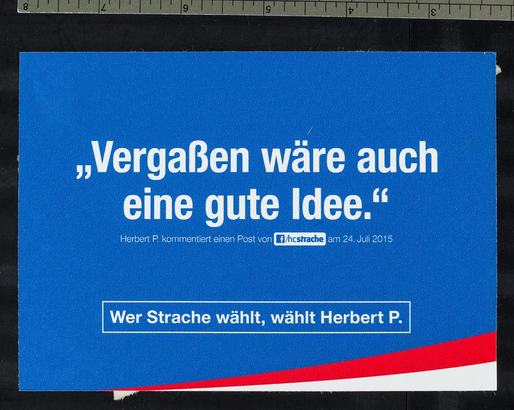 „Vergaßen [sic] wäre auch eine gute Idee“ / Herbert P. kommentiert einen Post von f (facebook)/hc strache am 24. Juli 2015 / Wer Strache wählt, wählt Herbert P.