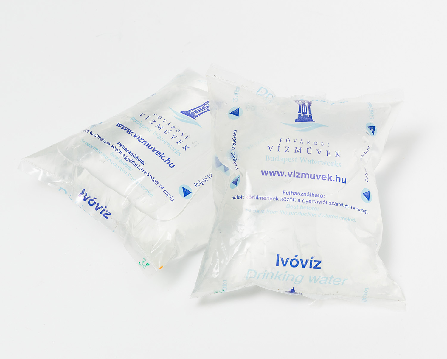 2 Packungen Trinkwasser in Plastikbeutel, produziert von den Budapester Wasserwerken (Ivóvíz = Trinkwasser), haltbar bis 9.10.15.
