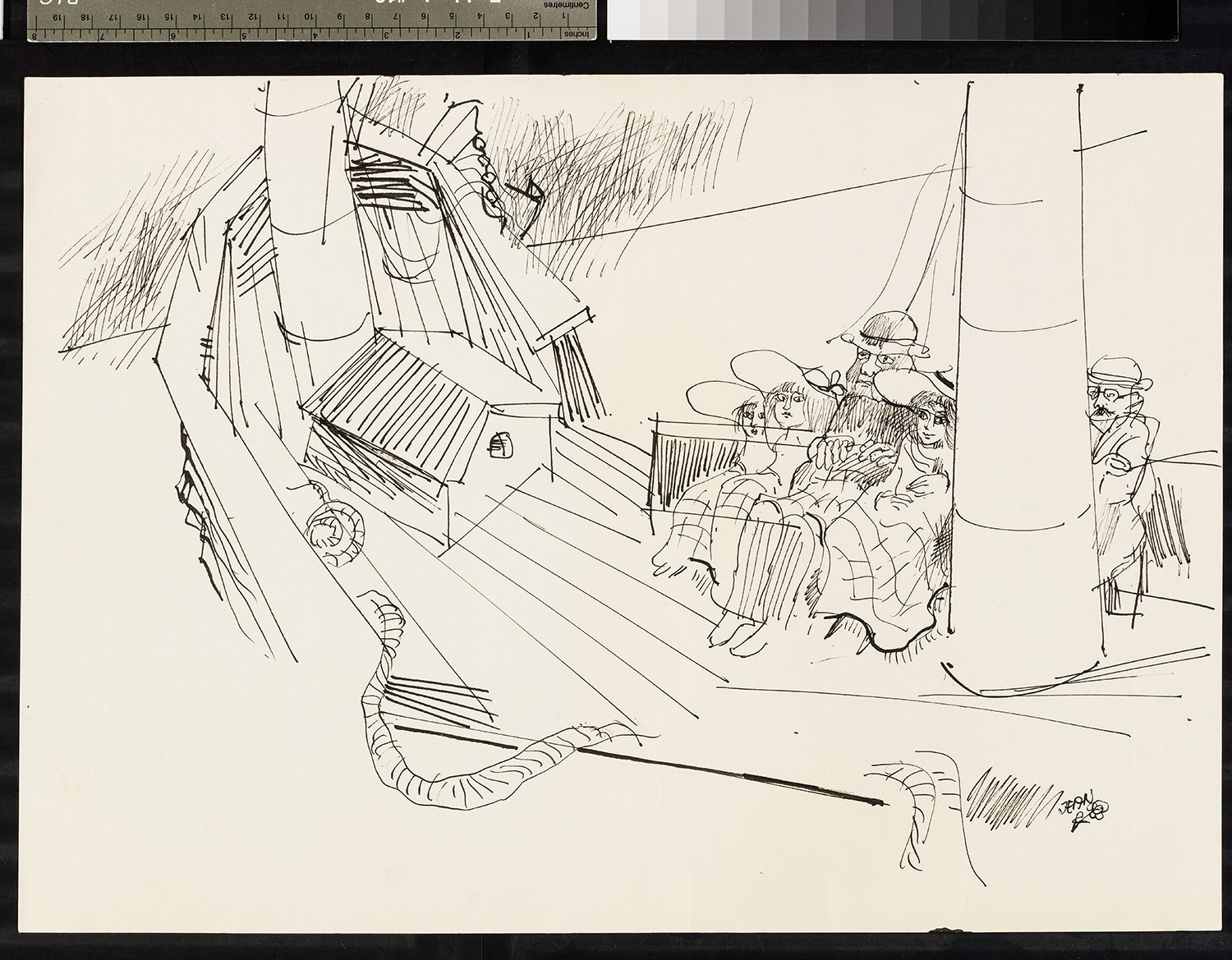 Erschienen in: Arbeiter-Zeitung, AZ-Sonntagsbeilage, 1.1.1965, S.IV (Illustration zu: Guy de Maupassant: Seltsame Silvesternacht.)