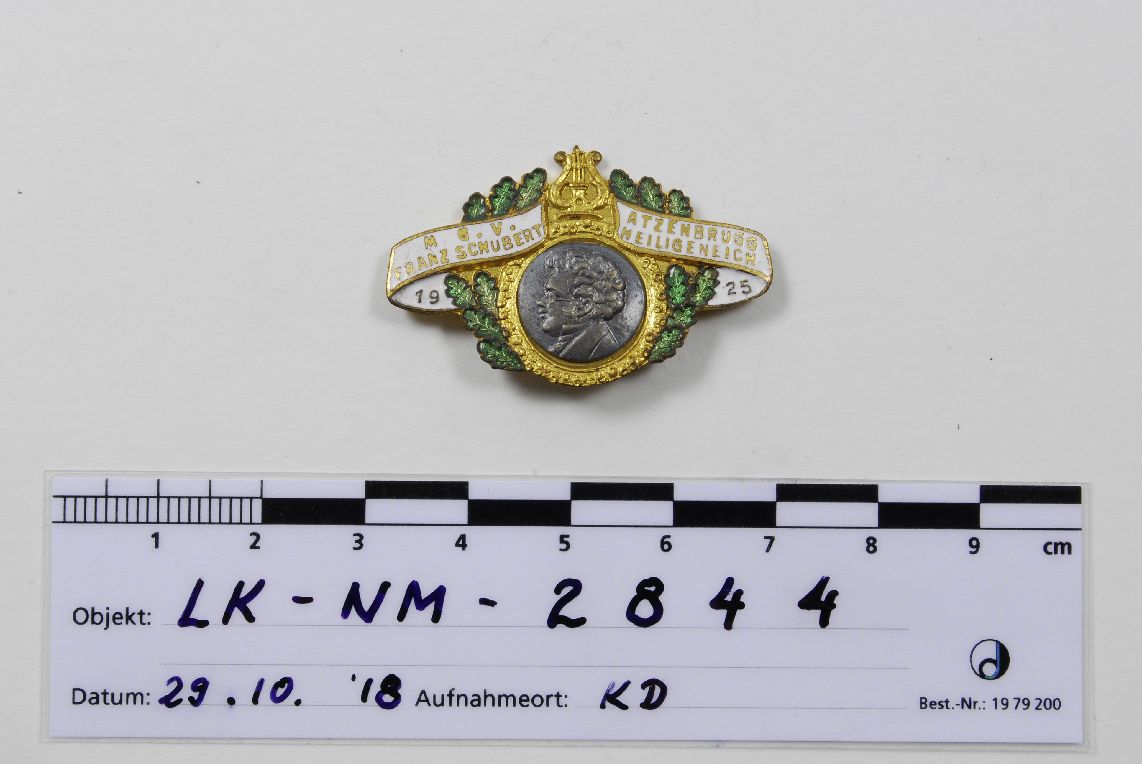 Büste Franz Schuberts in Profildarstellung, Leier, Eichenlaub