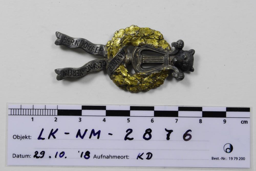 Technische DetailsNeusilber, teils translutid gelb lackiert, Textil (fehlt)