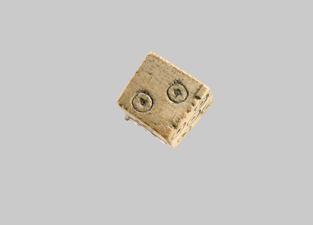 Mit Kreisaugendekor. Die gegenüberliegenden Augen ergeben zusammen nicht immer die Zahl Sieben (Sechs - Eins; Vier - Zwei; Fünf - Drei).