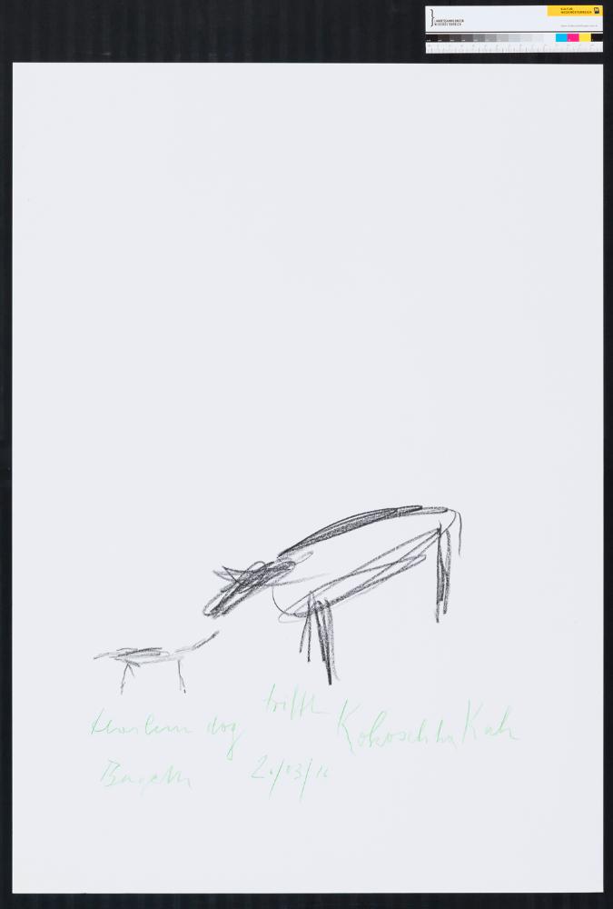 VS unten bet., sign., dat.: "Harlem dog trifft Kokoschka Kuh / Bugatti / 20/03/16"