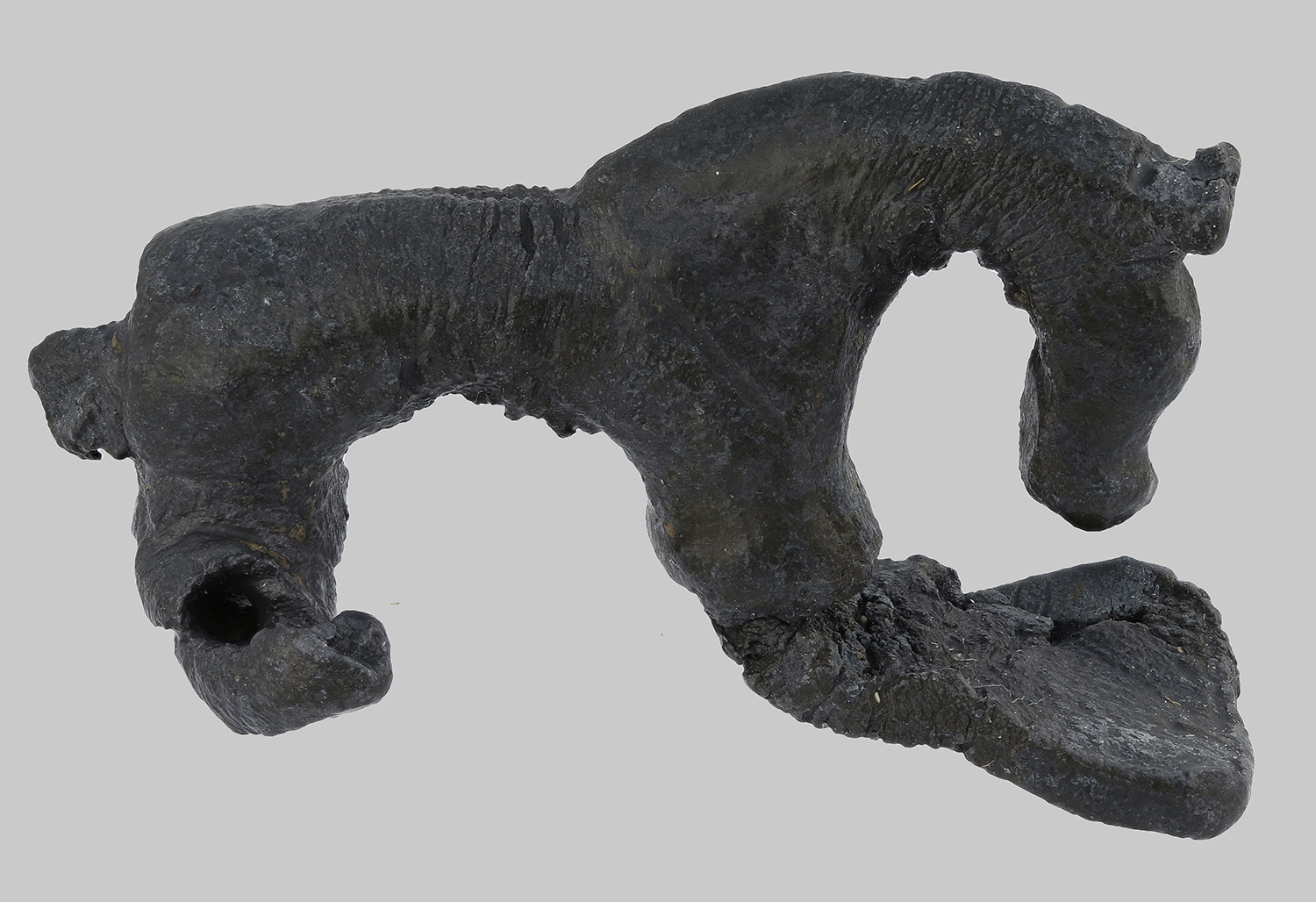 Pferdeförmige Fibel mit abgebrochener Nadel.