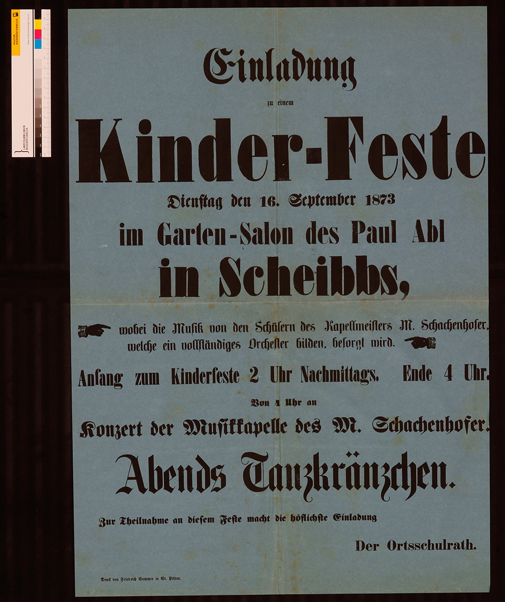 Einladung, Kinderfest Scheibbs, Gartensalon Paul Abl, 16. September 1873.