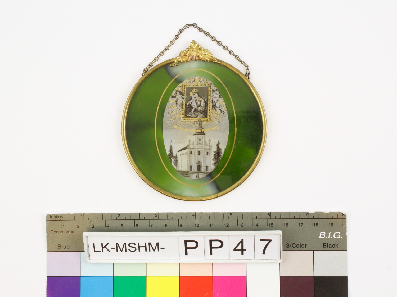 Technische DetailsGlas in vergoldetem Metallrahmen gefasst