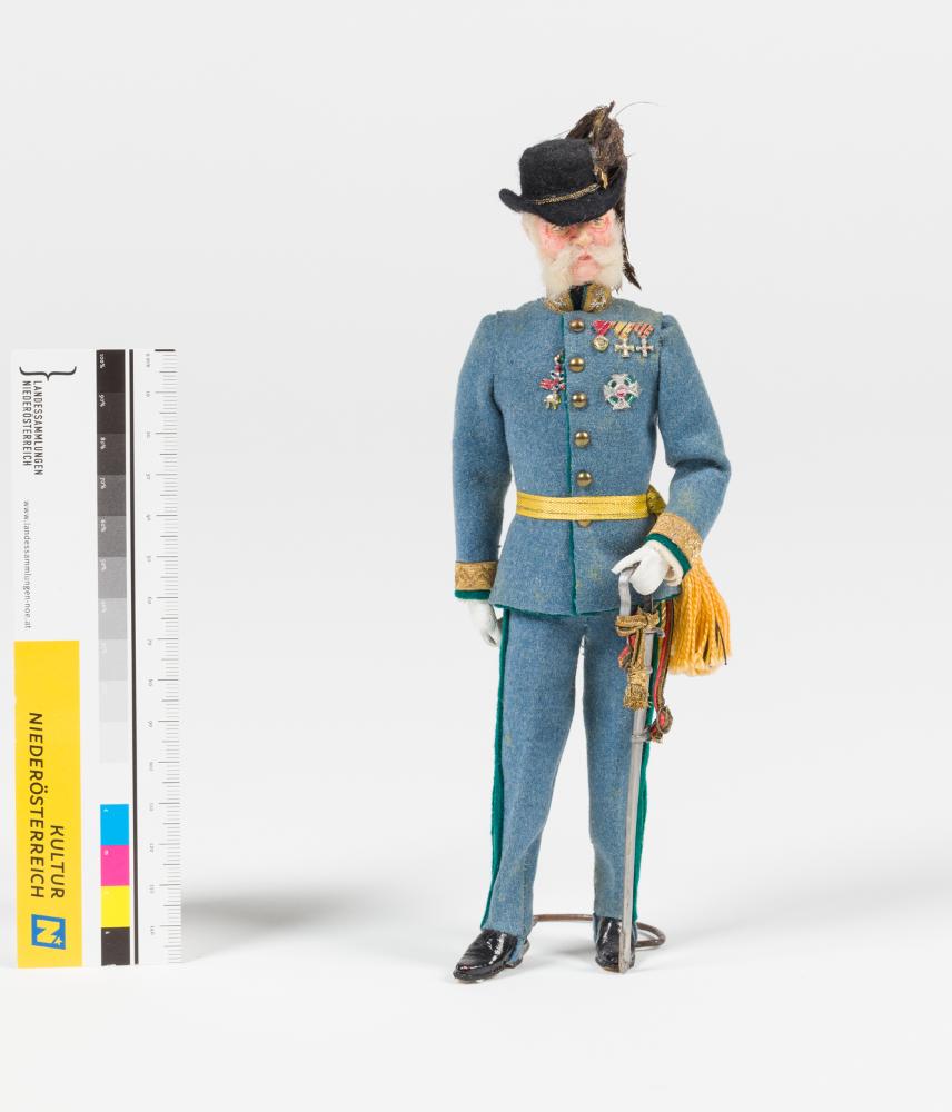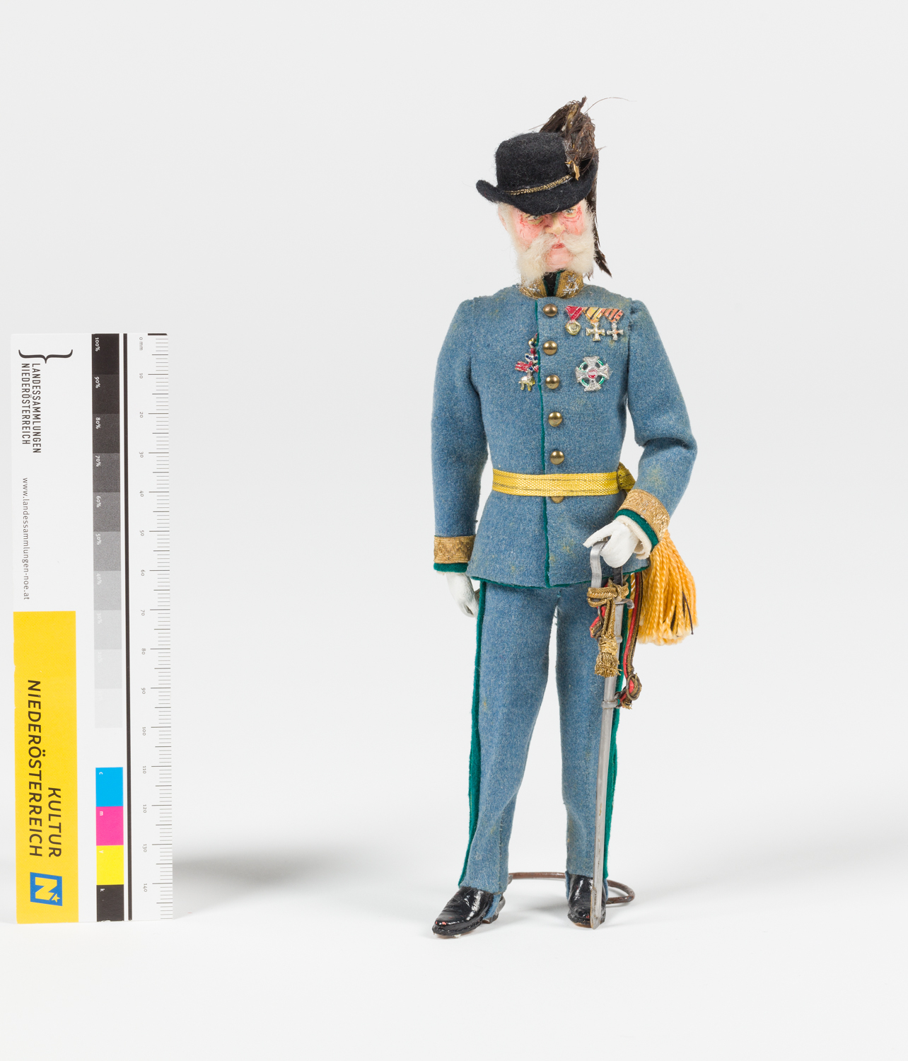 Die Figur zeigt Kaiser Franz Joseph I. als Oberstinhaber des k.u.k. 1. Kaiserjäger-Regiments und mit Orden vom Goldenen Vlies.