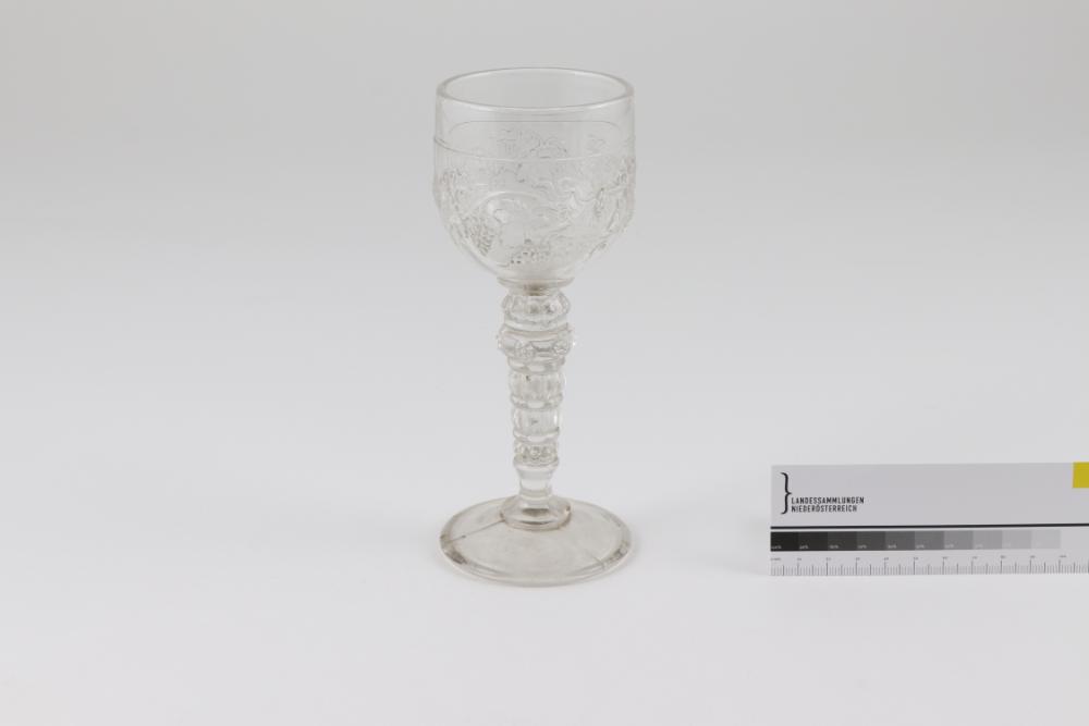 Römerglas mit erhaben vegetabil ornamentierter Wandung.