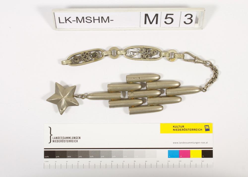 Arbeit eines italienischen Kriegsgefangenen im Ersten Weltkrieg. Teilweise aus Projektilen.