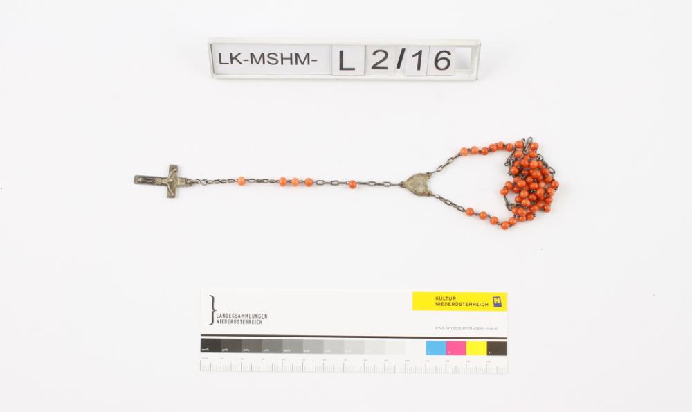 Rosenkranz aus Silber mit Perlen aus gefärbter Koralle)