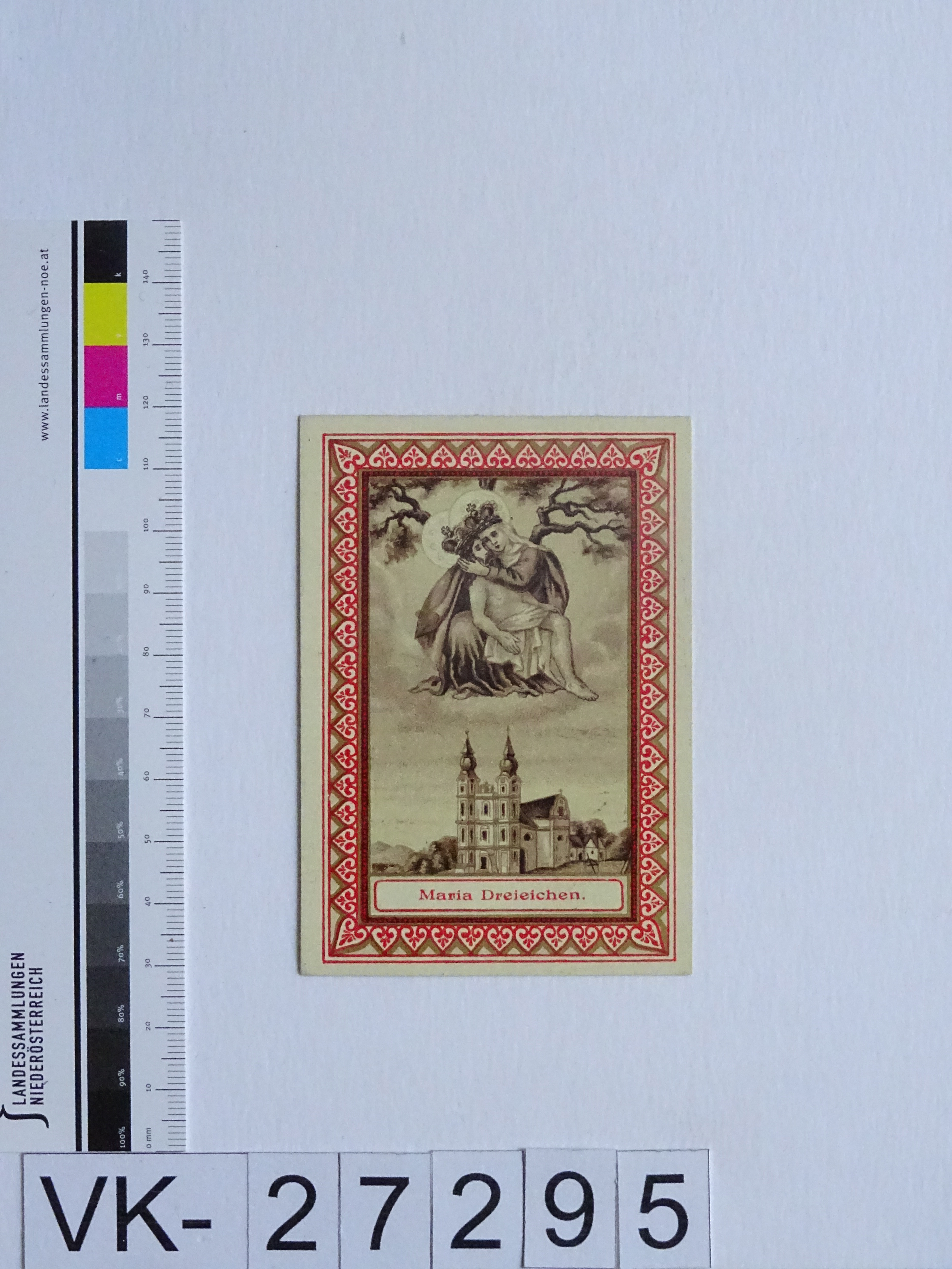 Maria Dreieichen; Vorderseite: Gnadenstatue = Pietà, Basilika; Rückseite: "Gebet", "Verlag des Adolf Kopecky, Wien"
