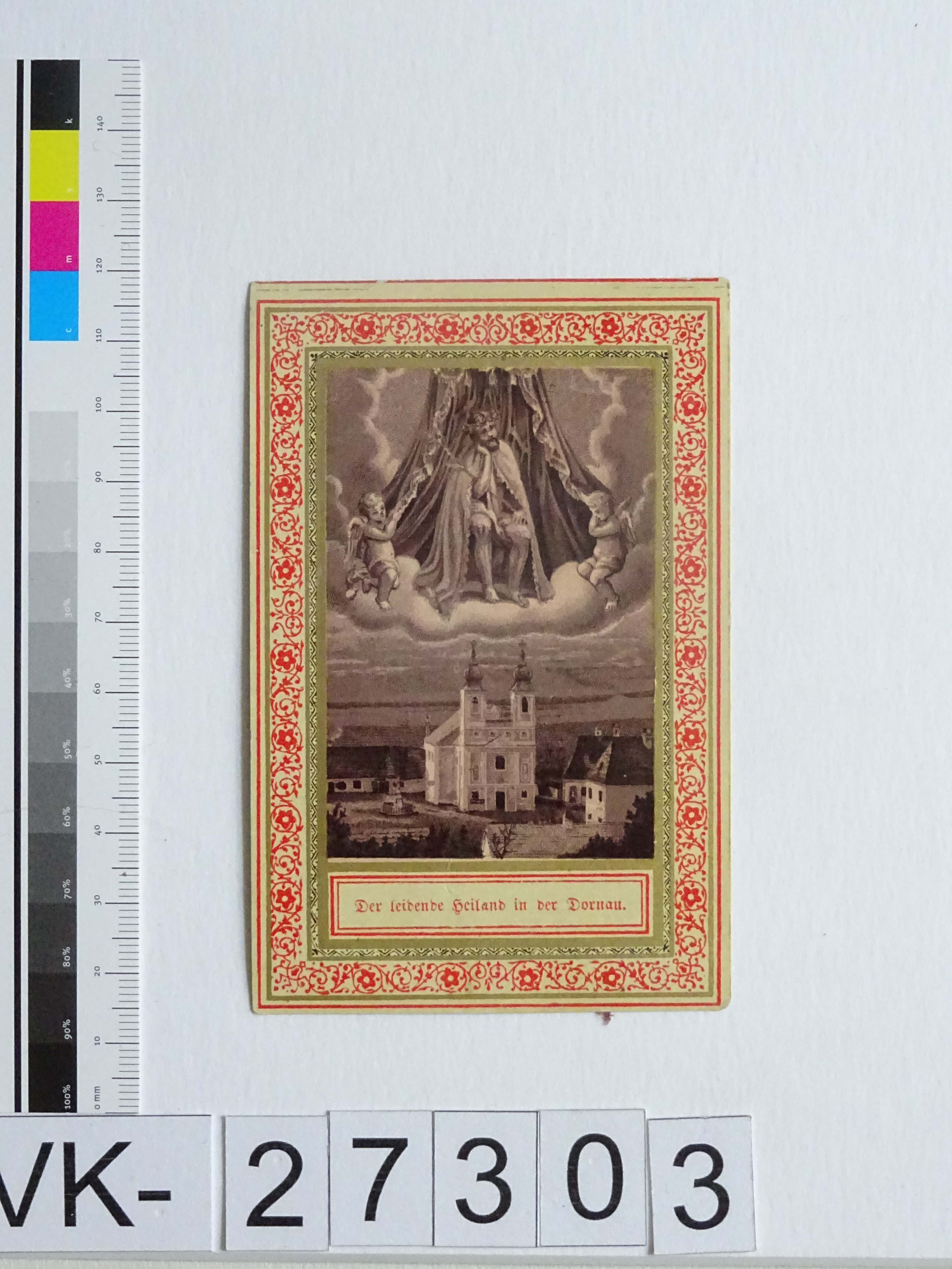 Dornau bei Altenmarkt an der Triesting; Vorderseite: Gnadenbild = Christus in der Rast, "Der leidende Heiland in der Dornau", Wallfahrtskirche; Rückseite: "Gebet", "Verlag v. G. Fischer, Innsbruck"