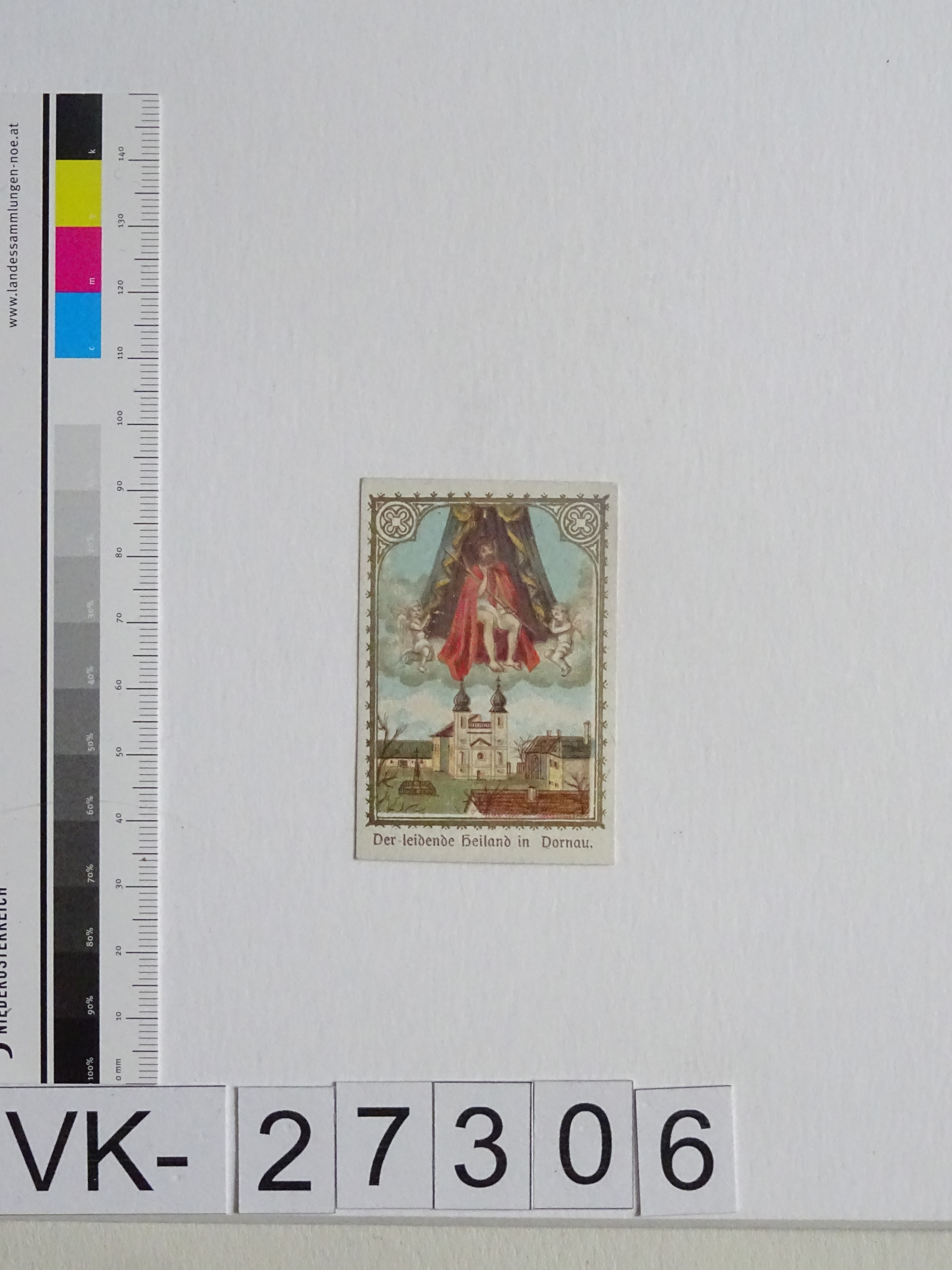 Dornau bei Altenmarkt an der Triesting; Vorderseite: Gnadenbild = Christus in der Rast, "Der leidende Heiland in Dornau", Wallfahrtskirche; Rückseite: "Gebet des heiligen Bernardus", "Verlag Friedmann Kriegsauer, Wien"
