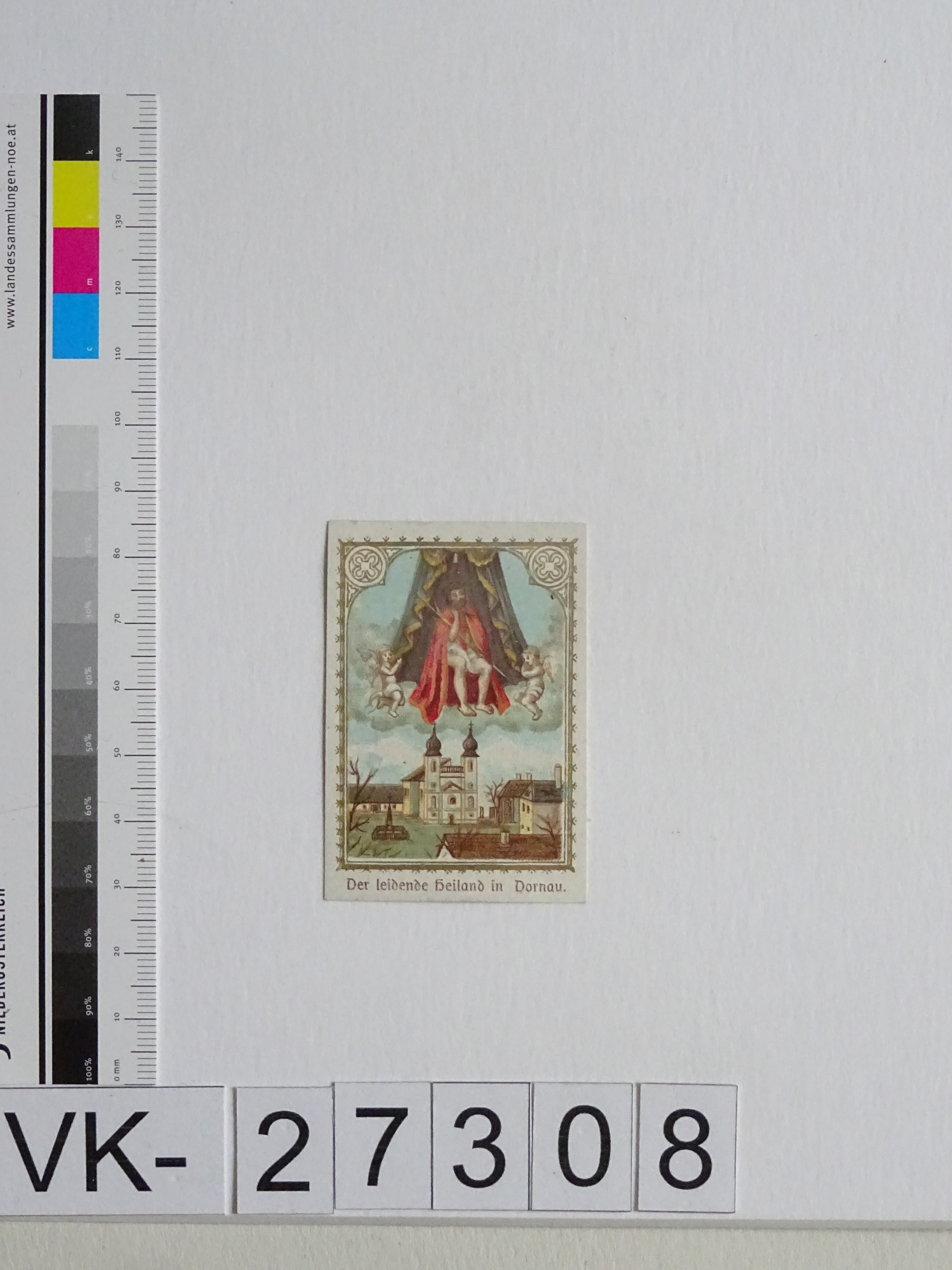 Dornau bei Altenmarkt an der Triesting; Vorderseite: Gnadenbild = Christus in der Rast, "Der leidende Heiland in Dornau", Wallfahrtskirche; Rückseite: "Gebet des heiligen Bernardus", "Verlag Friedmann Kriegsauer, Wien"