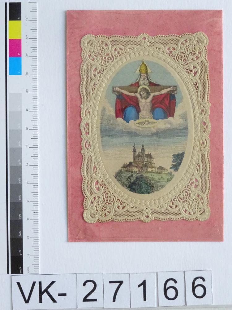 Sonntagberg; Vorderseite: Gnadenbild = Gnadenstuhl, Basilika; verklebt auf Karton