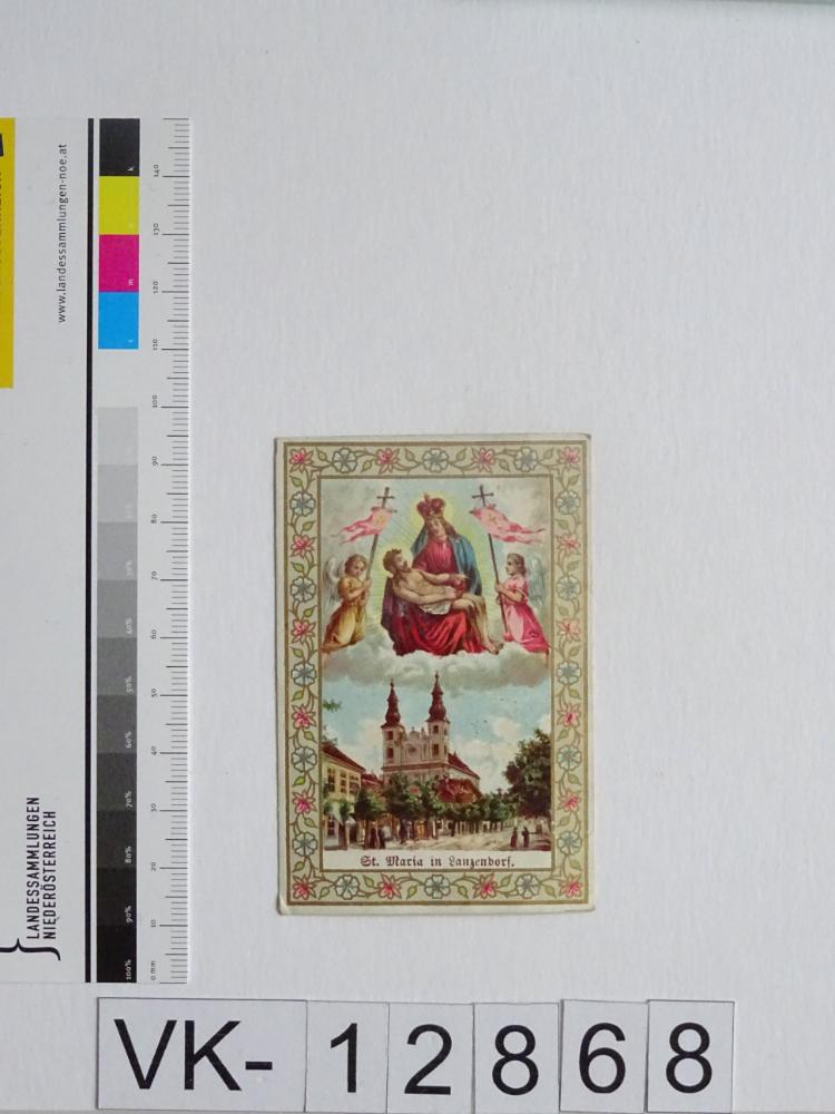 Maria Lanzendorf, "Sieben Schmerzen Mariens" Vorderseite: Gnadenstatue = Pietà, Wallfahrtskirche; Rückseite: "Gebet", "Verlag von Gregor Fischer, Innsbruck"