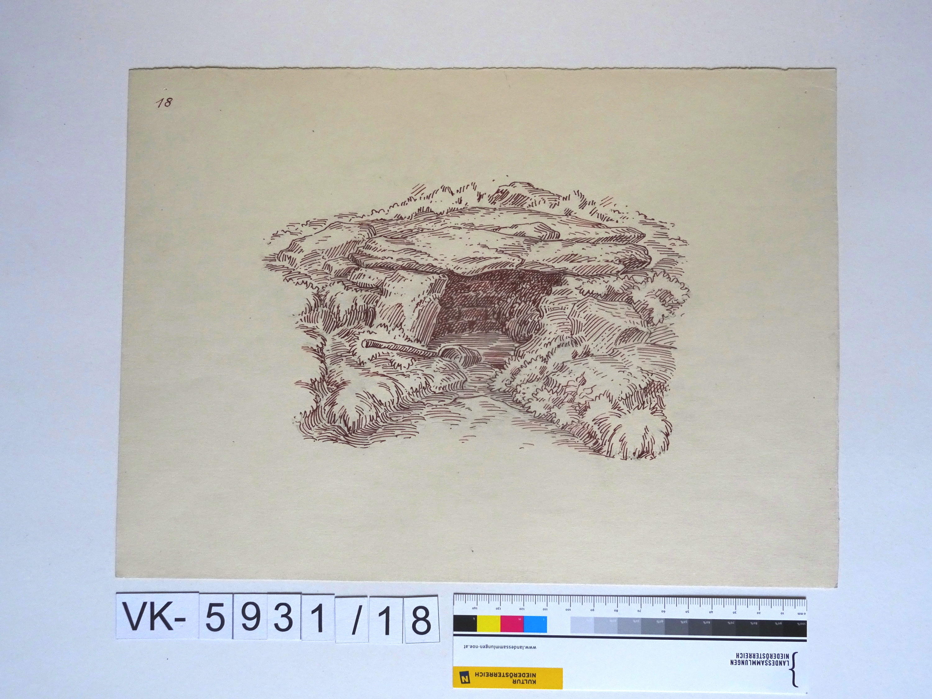 Zeichnung aus der Serie Waldviertler Heimatbilder: "Blatt 18: mit Granitblöcken gefasste Quelle; Kehrbach"