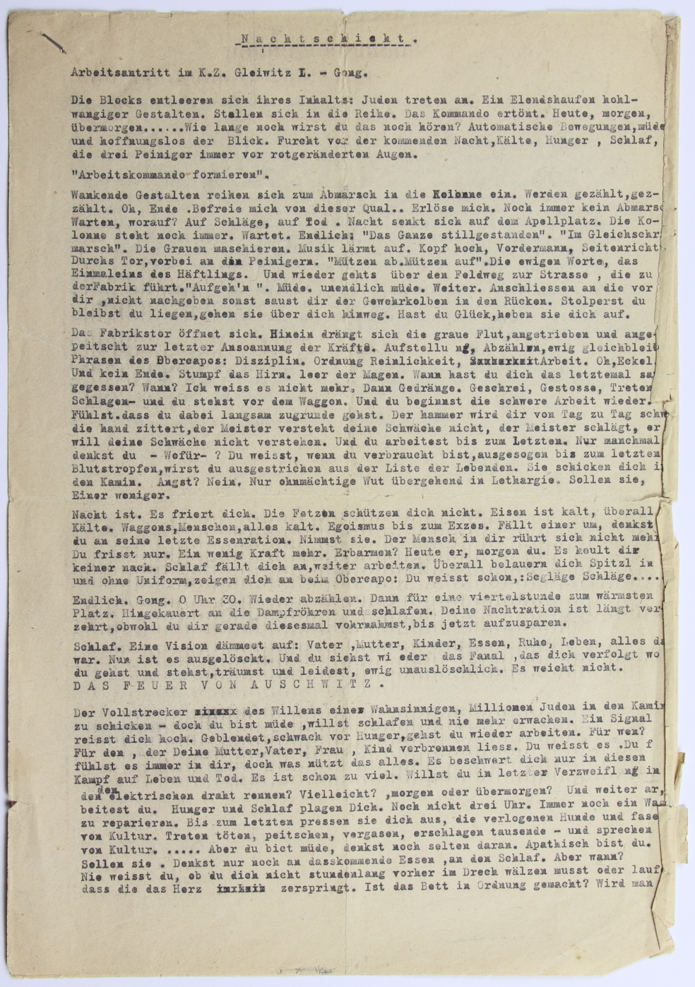 Otto Kalwo, geboren am 2. Februar 1918 in Wien, gestorben am 23. Mai 2018 in Suffern Bundesstaat New York, überlebte den Holocaust in mehreren NS-Lagern. Er war das jüngste von zwei Kindern von Josef und Hermine (geb. Rosner) Kalwo. Gemeinsam mit seinen Eltern und seinem Bruder Paul wurde Otto Kalwo am 9. Oktober 1942 mit dem Transport IV/13 von Wien, wo sie in einer Sammelwohnung in der Krummbaumgasse 2 im 2. Wiener Gemeindebezirk lebten, nach Theresienstadt deportiert. Dort kam sein Vater Josef Kalwo am 17. April 1944 um. Zum Tod seines Bruders ist lediglich das Datum der Deportation vom 29. September 1944 ins Konzentrationslager Auschwitz bekannt. In Auschwitz bzw. dem Außenlager Gleiwitz lernte er Walter Fantl-Brumlik kennen, mit dem er nach dem Todesmarsch ins KZ Blechhammer (bei Slawentzitz/Slawiecice westlich von Gleiwitz/Gliwice) die Befreiung erlebte. Von dort aus machte sich Otto Kalwo gemeinsam mit Walter Fantl-Brumlik, Leo Luster und anderen Überlebenden auf den Weg in den Westen. Im ehemaligen Kriegsgefangenenlager Sagan schnappte sich Otto Kalwo eine Schreibmaschine und begann das Erlebte der letzten Jahre erstmals literarisch in Worte zu fassen, was er bei seinem späteren Aufenthalt in Theresienstadt und Deggendorf fortsetzte. Seine abgetippten Manuskripte teilte er dabei an andere Überlebende aus – so auch an Walter Fantl-Brumlik, der sie aufbewahrte und die Texte als Teil seines Nachlasses an die Landessammlungen NÖ übergab. Gemeinsam mit seiner Mutter Hermine, die den Holocaust in Theresienstadt überlebte, ging Otto Kalwo ins DP-Camp Deggendorf, von wo sie gemeinsam im März 1947 in die USA auswanderten. Noch im selben Jahr heiratete er in den USA die Wienerin Gertrud Kornfeld (geb. Böhm) und änderte später seinen Namen auf Lawrence P. Calvert.