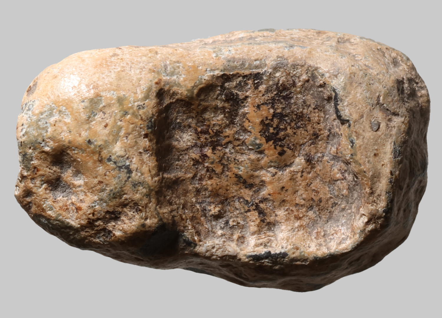 Längliche Marke mit rechteckigem Stempel; figürliche Darstellung kaum erkennbar