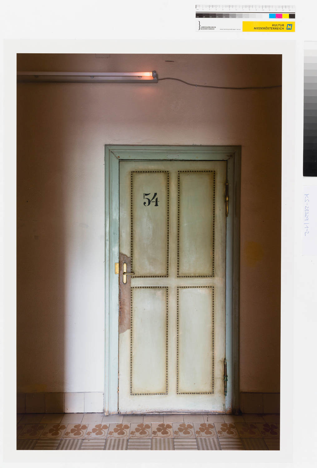 SignaturRS. re. unten bez., dat., bez. u. sign.: "Serie Zauberberg - Das Südbahnhotel #42 o.T. (2014) Bel Etage, Zimmer 54 2/5+2 Yvonne Oswald"