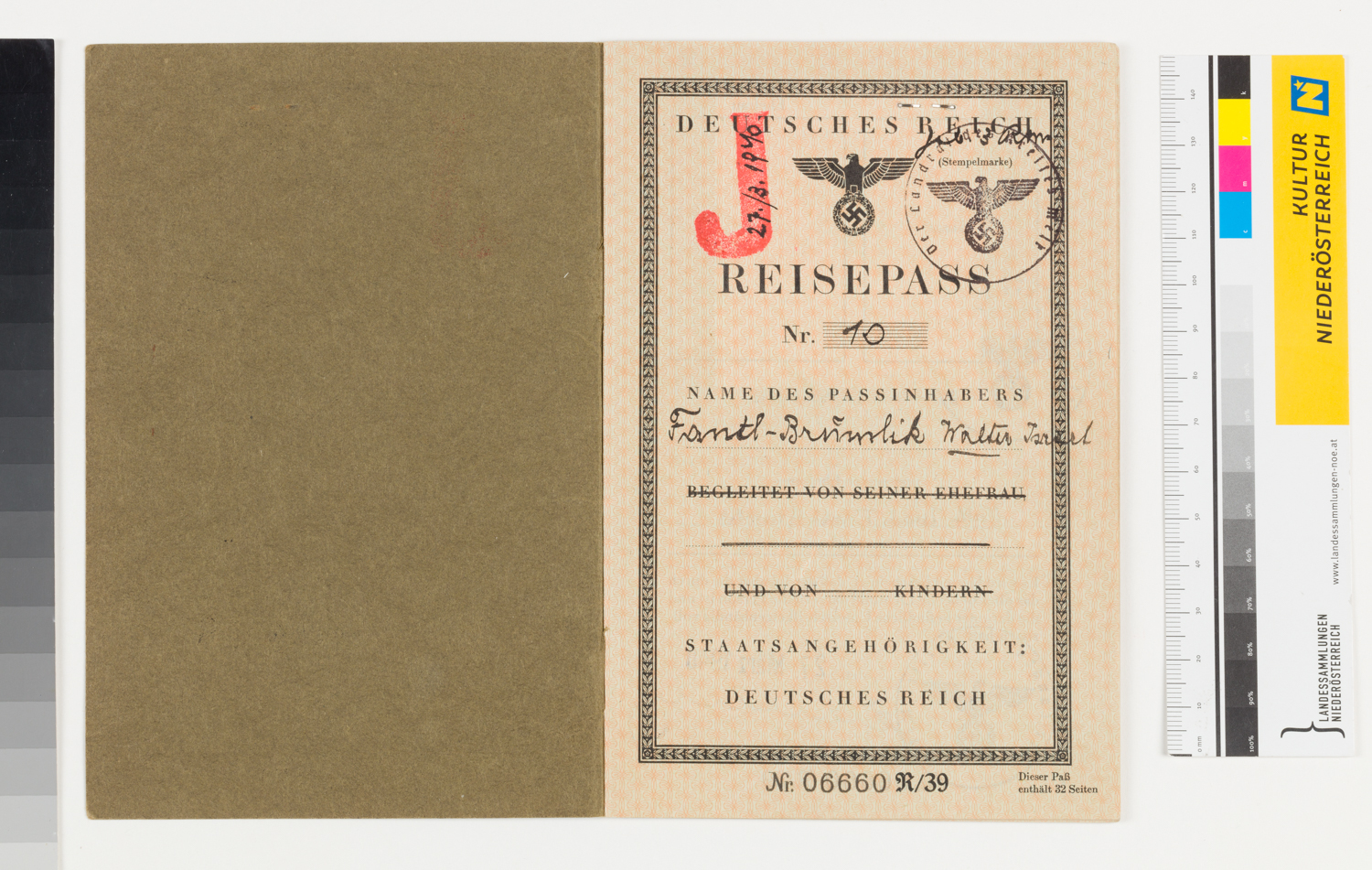 Aufgrund der Verordnung über Reisepässe von Juden vom 5. Oktober 1938 (RGBl. I, S. 1342 / GBlÖ S. 2268) wurden deren Pässe für ungültig erklärt und eingezogen oder mit einem Judenstempel versehen. Deutschen Juden war damit ein unbemerkter Grenzübertritt im visafreien Grenzverkehr unmöglich geworden. Der Reisepass wurde am 27.3.1940 von Melk abgeholt, kurz bevor die Familie nach Wien ziehen musste in die Lilienbrunngasse. Bis dahin lebte die Familie noch in der Hoffnung, bald auswandern zu können. (Zeillinger, Der Grütel des Walter Fantl, S. 52)