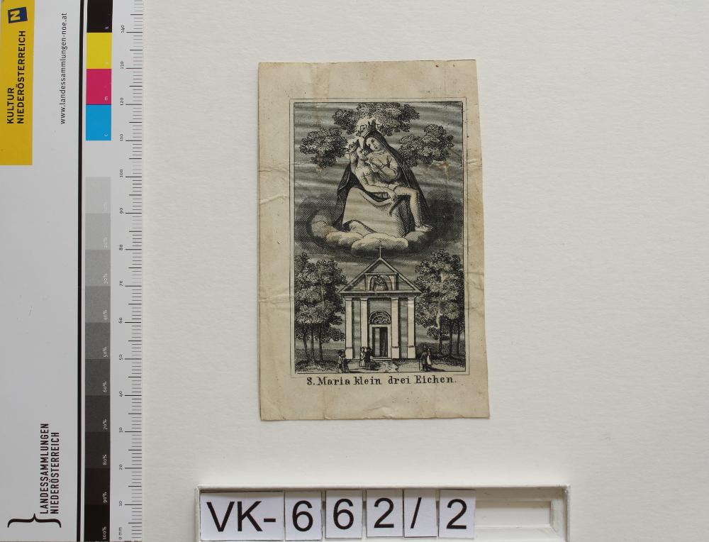 Klein Maria Dreieichen, "Schmerzhafte Muttergottes"; Vorderseite: Gnadenstatue = Pietà, Wallfahrtskapelle "S. Maria klein drei Eichen"; Eintrag Inventarbuch: "Maria klein 3 Eichen"