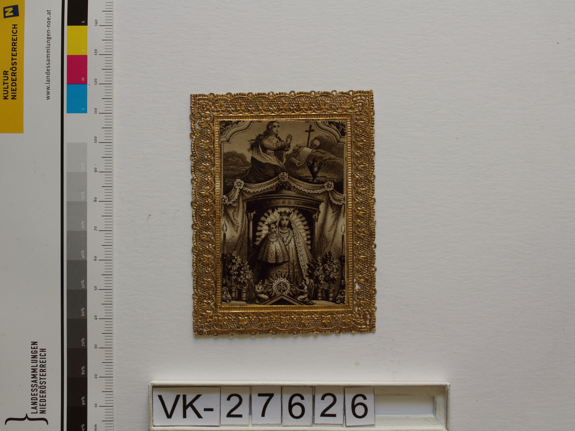 Material/TechnikSpitzenbild; Druckgrafik, Sepia; Umrahmung gold