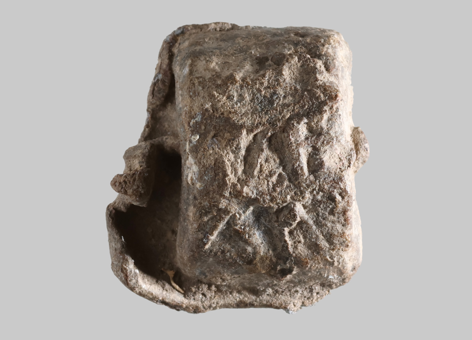 Plombe mit unbestimmter Stempelung und Buchstabenabdrücken auf Rückseite