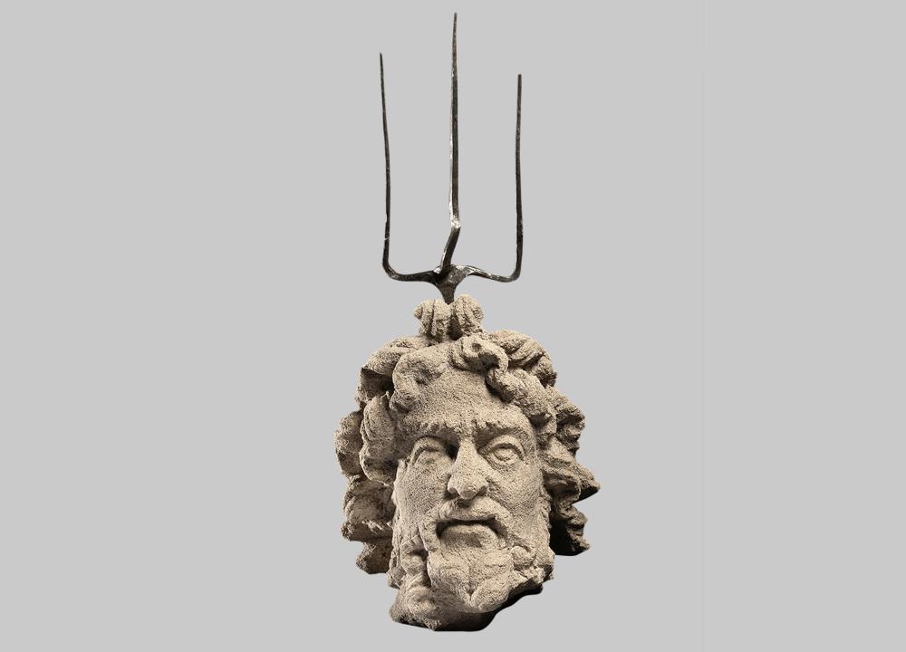 Der bärtige Kopf mit Lockenkranz und hochgestellten Lockenbüscheln oberhalb der Stirn gehörte, zusammen mit anderen erhaltenen Bruchstücken, wahrscheinlich zu einer Sitzstatue im Typus des thronenden Jupiter. Besonderes Kennzeichen dieser Statue ist das am Scheitelpunkt eingelassene gabelförmige Kopfattribut. Es könnte zur Befestigung von organischem Material (z. B. Federn oder Pflanzenschmuck) gedient haben.
