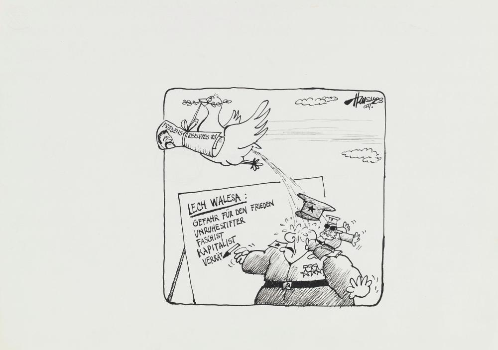 Polnische Dompteurnummer - Wer hat wen an der Nase? Der polnische Gewerkschaftsführer Lech Walesa den russischen Bären - oder dieser Polen?