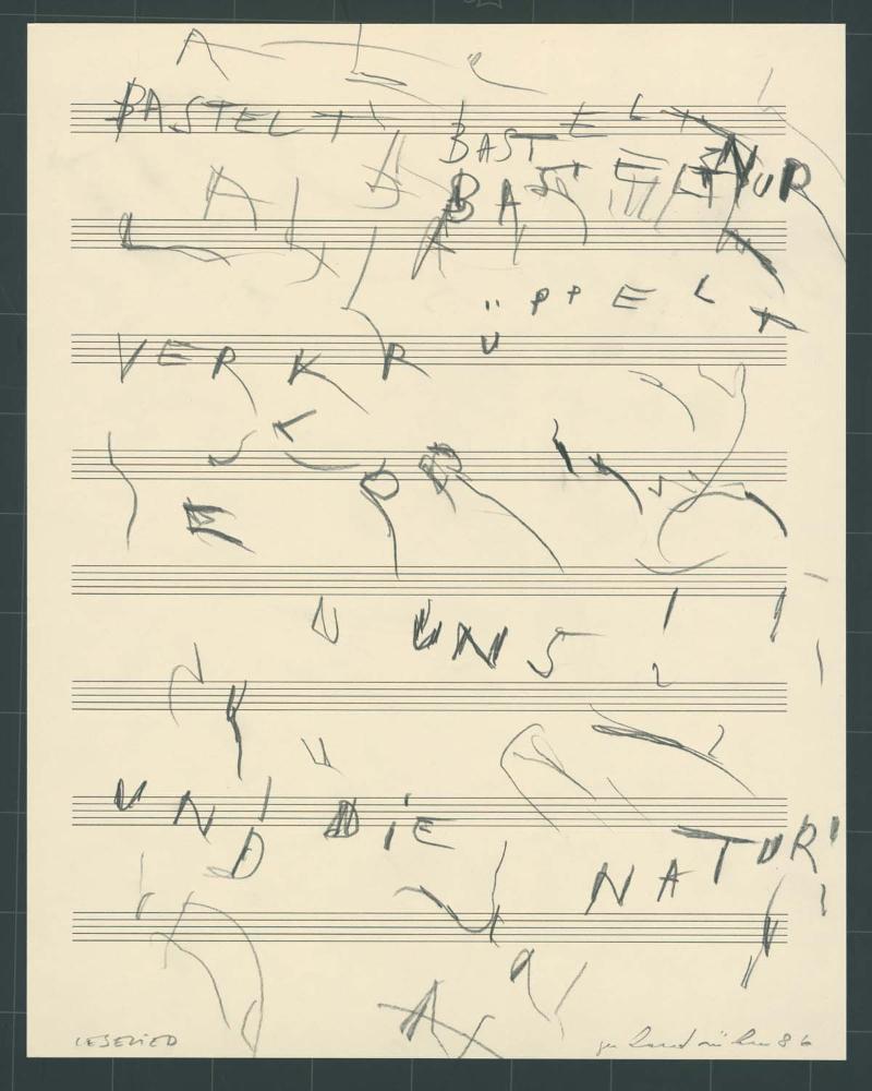 Signaturli.u.bez.: "LESELIED", re.u.sign.u.dat.: "gerhard rühm 86"