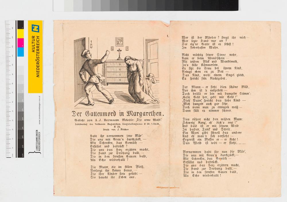 Bänkellied mit halbseitigem Druck der Tat (Kupferstich), sechs Strophen, einseitiger Druck.
