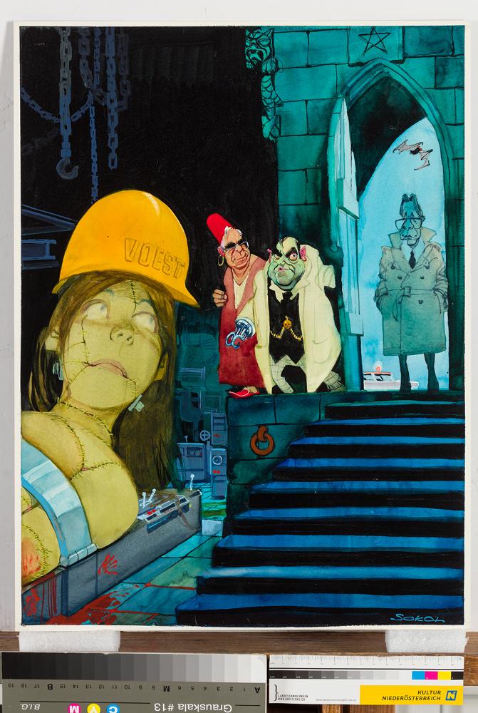 Aquarell, Tusche, Bleistift, Sprühlack auf Karton