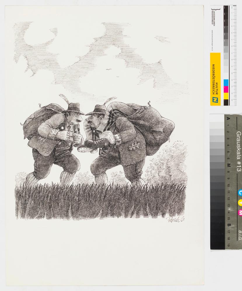 Erschienen in: Reinhard P. Gruber: Aus dem Leben Hödlmosers. Ein steirischer Roman mit Regie mit Zeichnungen von Pepsch Gottscheber, Residenz Verlag Salzburg und Wien, 1973 (Neuauflage 2012).