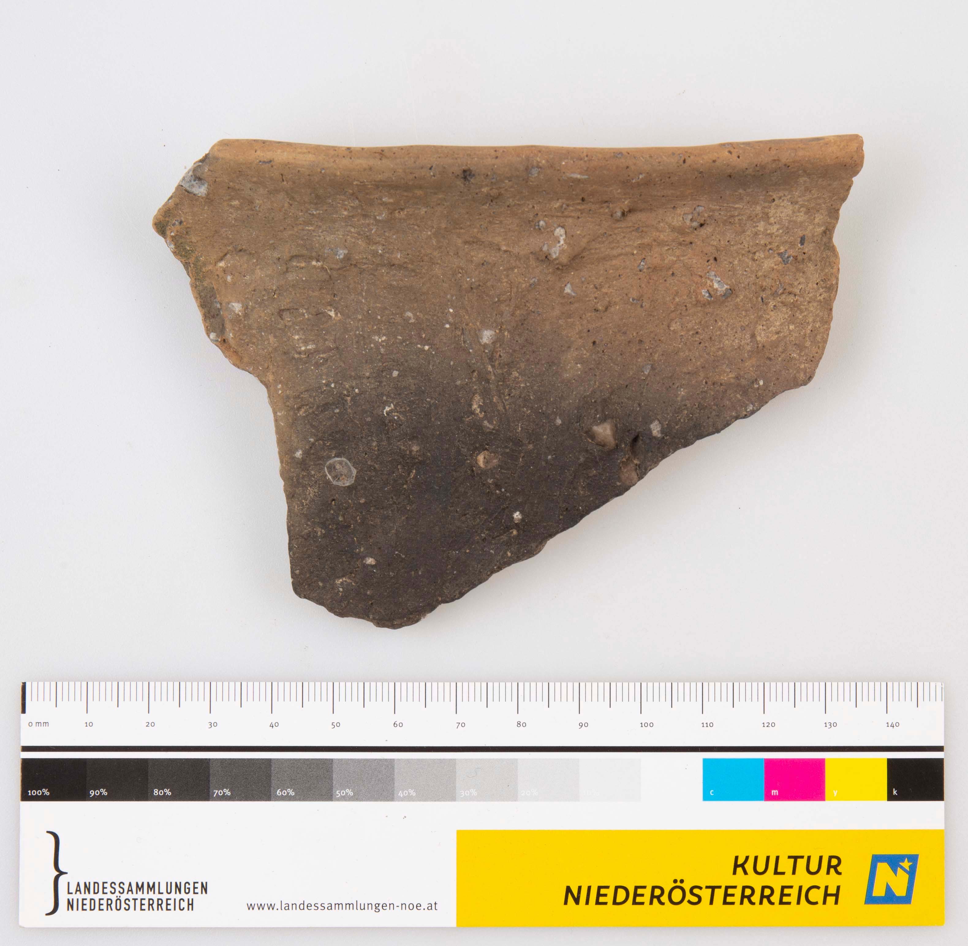 Randstück eines Gefäßes mit künstlicher Rauhung an der Außenseite