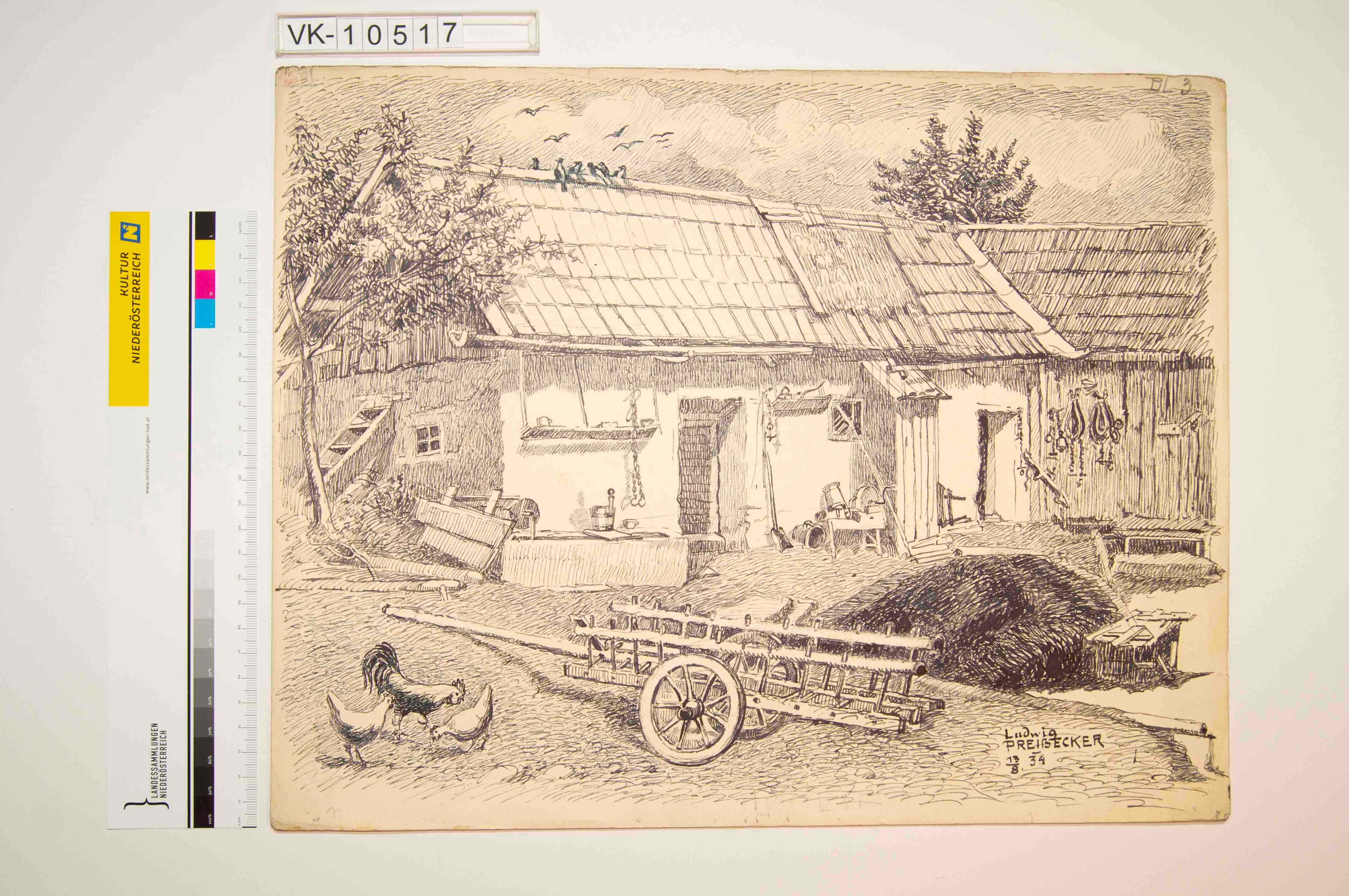 Zeichnung aus der Serie Waldviertler Heimatbilder: sign. Ludwig Preißecker, 13.8. 1934