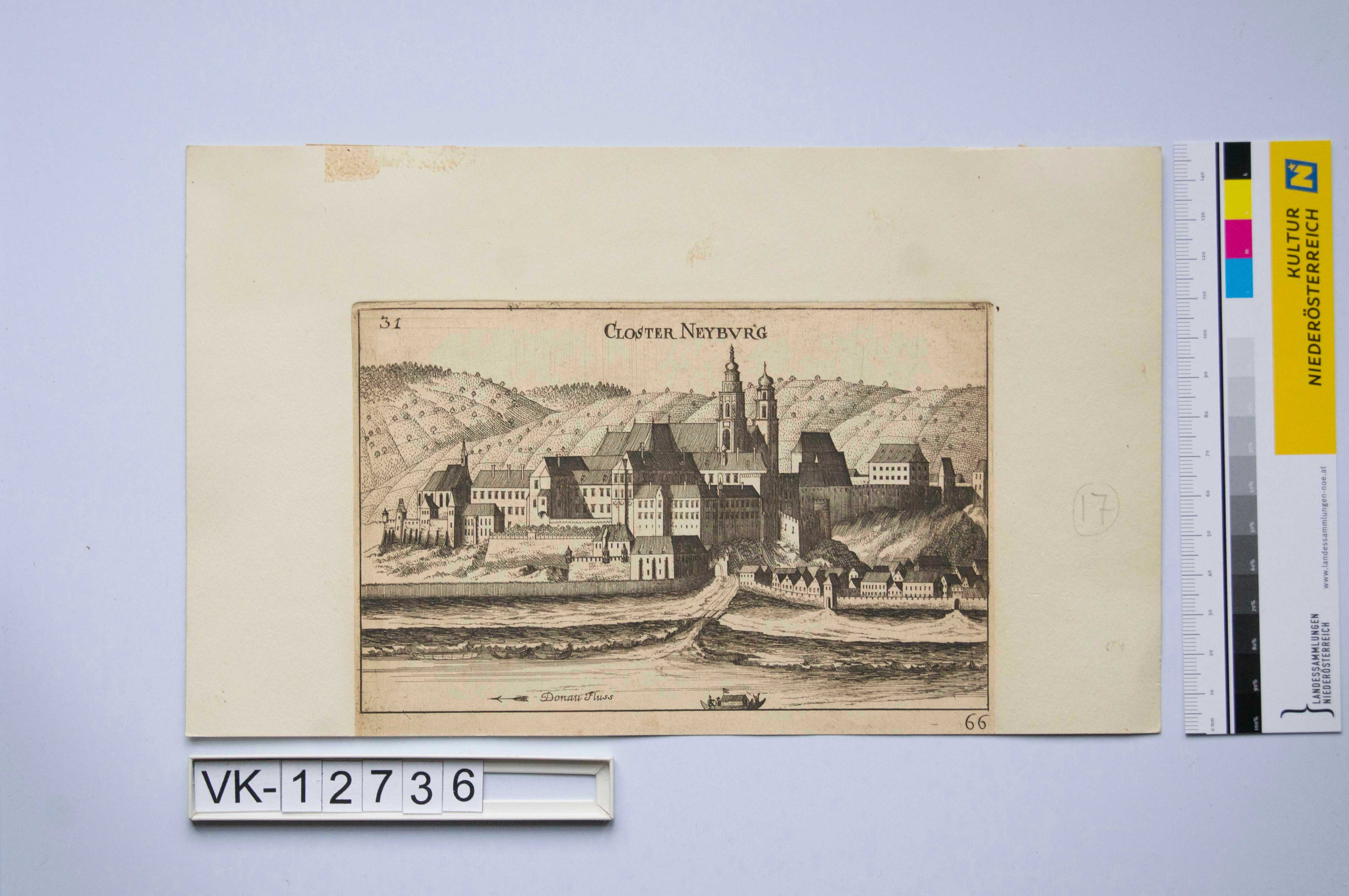 Vischer-Stich mit der Darstellung von Klosterneuburg, Bildtext: "CLOSTER NEYBVRG"