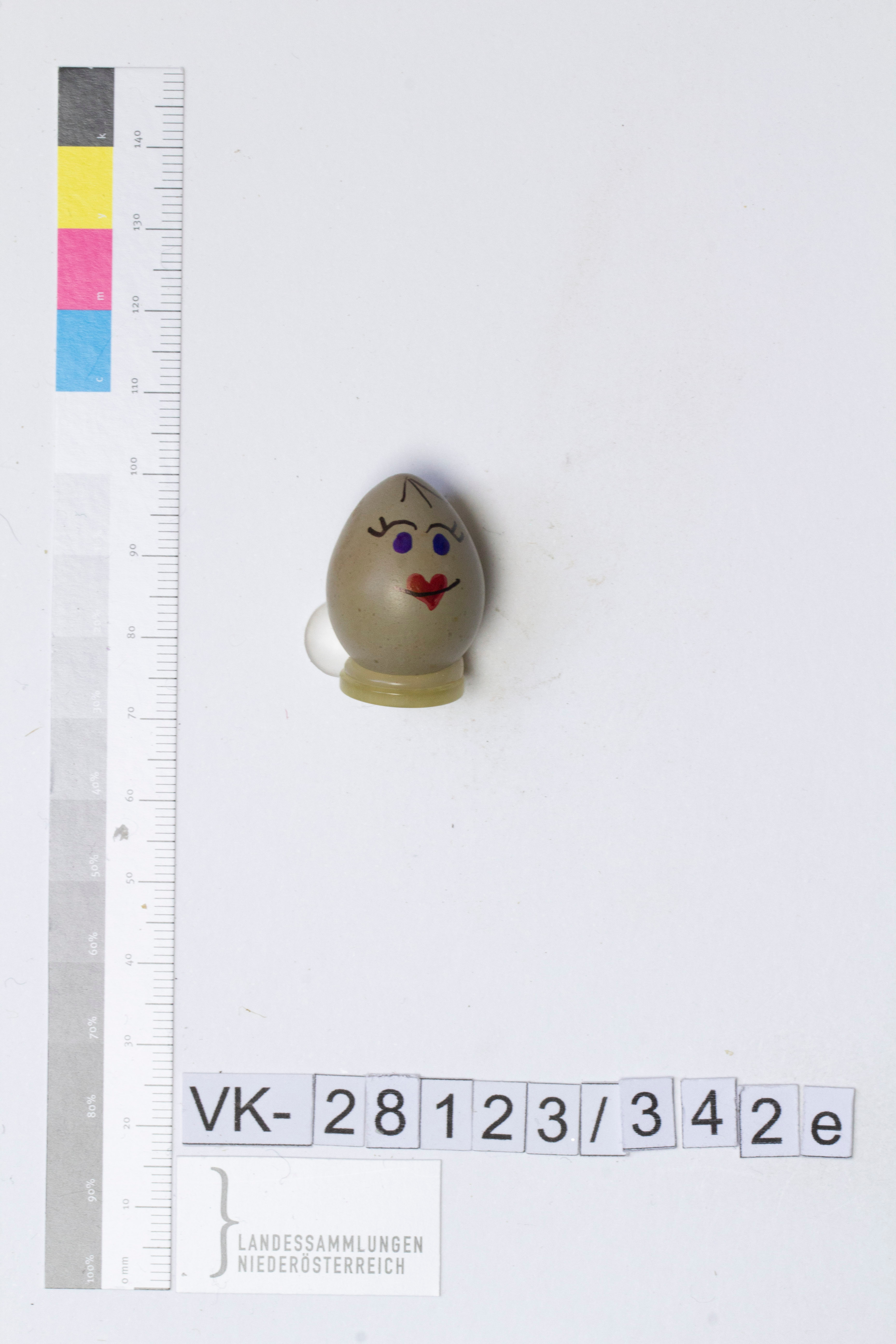Vogelei mit Standfläche = Babuschka -Ei, 5 teilig, gekocht, bemalt, Musterung: nur gemaltes Gesicht, Standfläche aus Knopf weiß