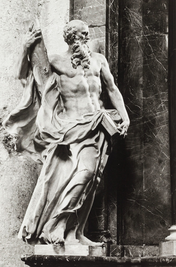 linker Seitenaltar: Marmorstatue des Apostel Andreas