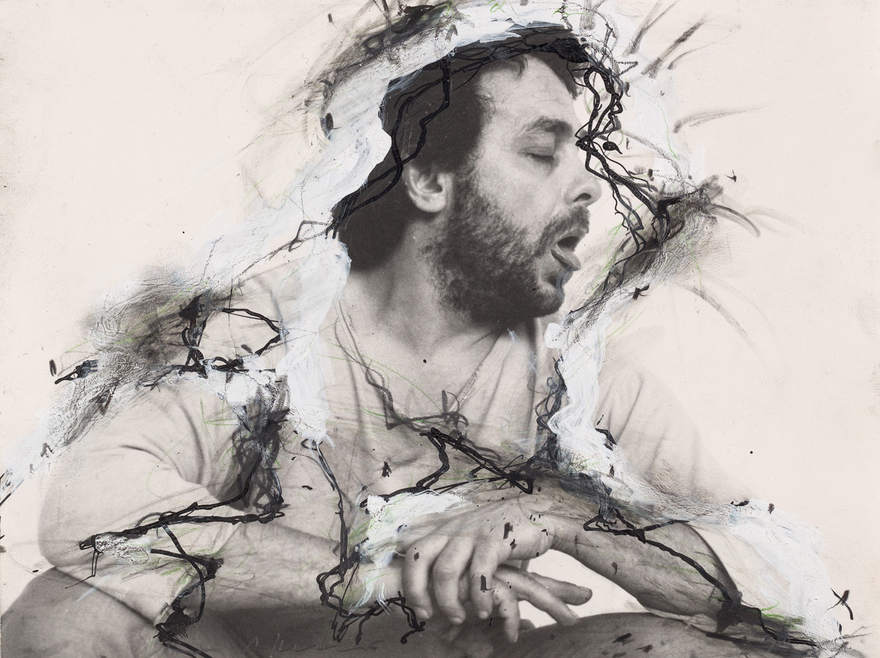 Graphit, Gouache, Tusche auf s/w Fotografie