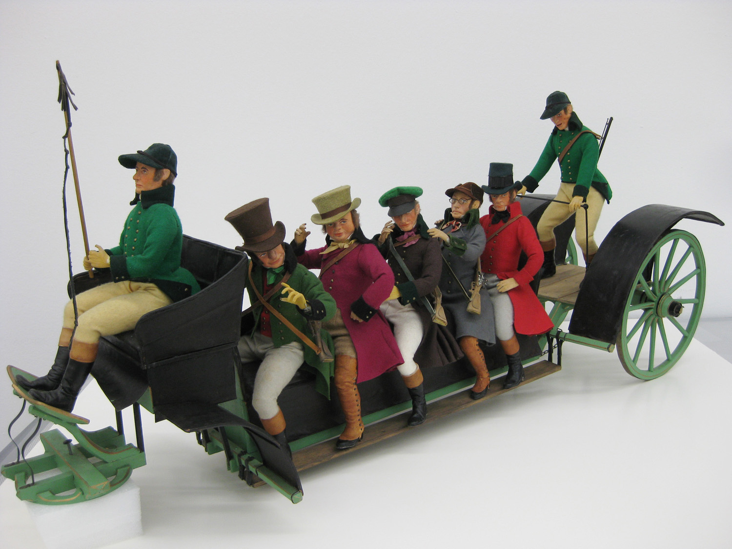 Jagdkutsche mit 2 Kutschern und fünf Jägern.