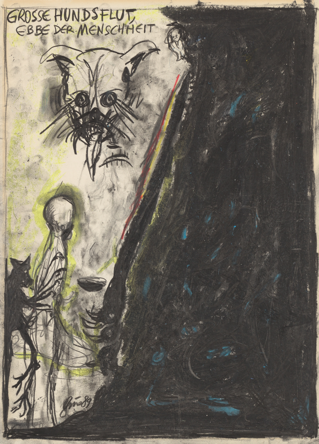 SignaturVS. oben bez., unten sign. u. dat.: "GROSSE HUNDSFLUT, EBBE DER MENSCHHEIT / Brus 89"