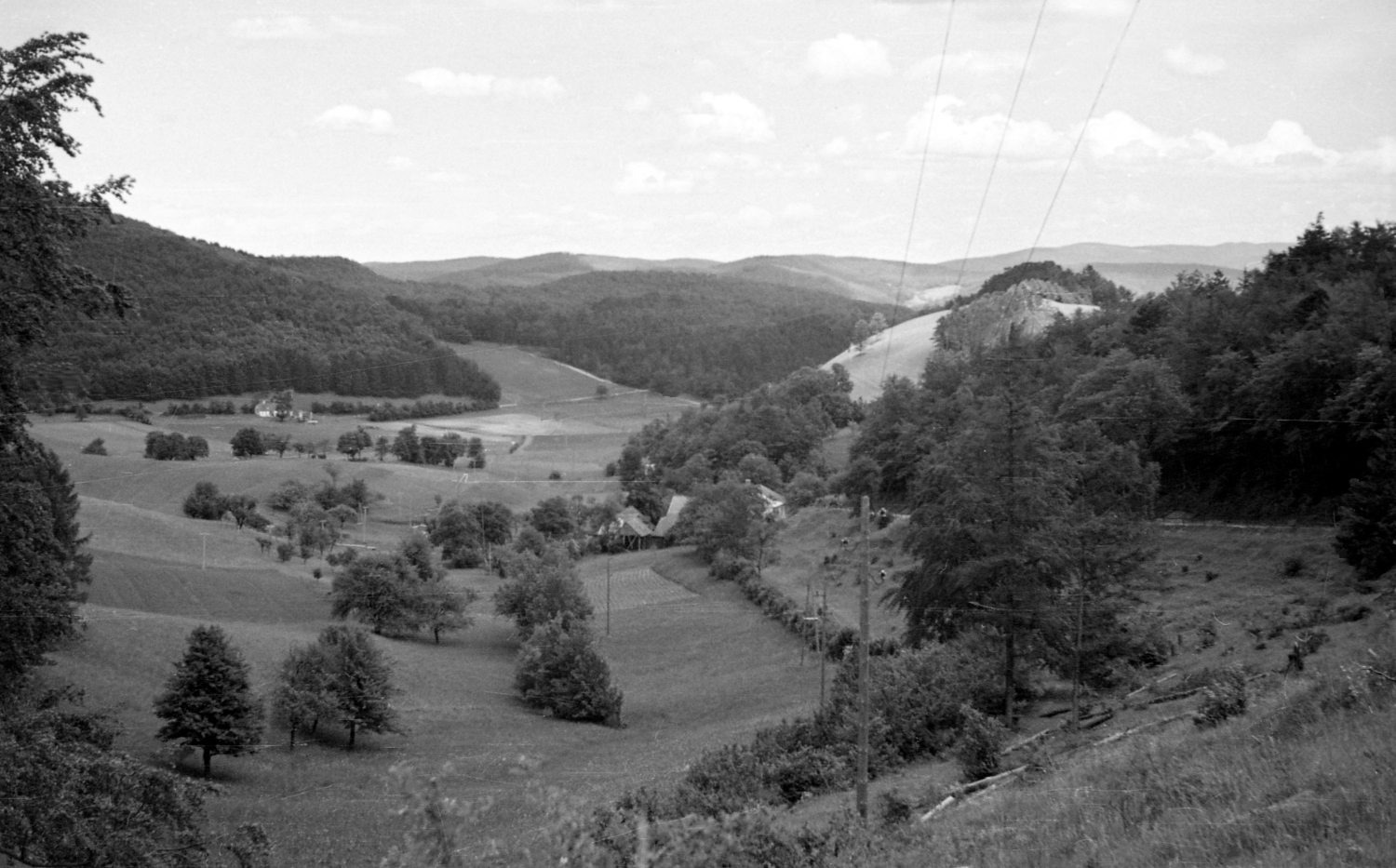 Wienerwaldlandschaft vor Alland mit gut gelegter Leitung