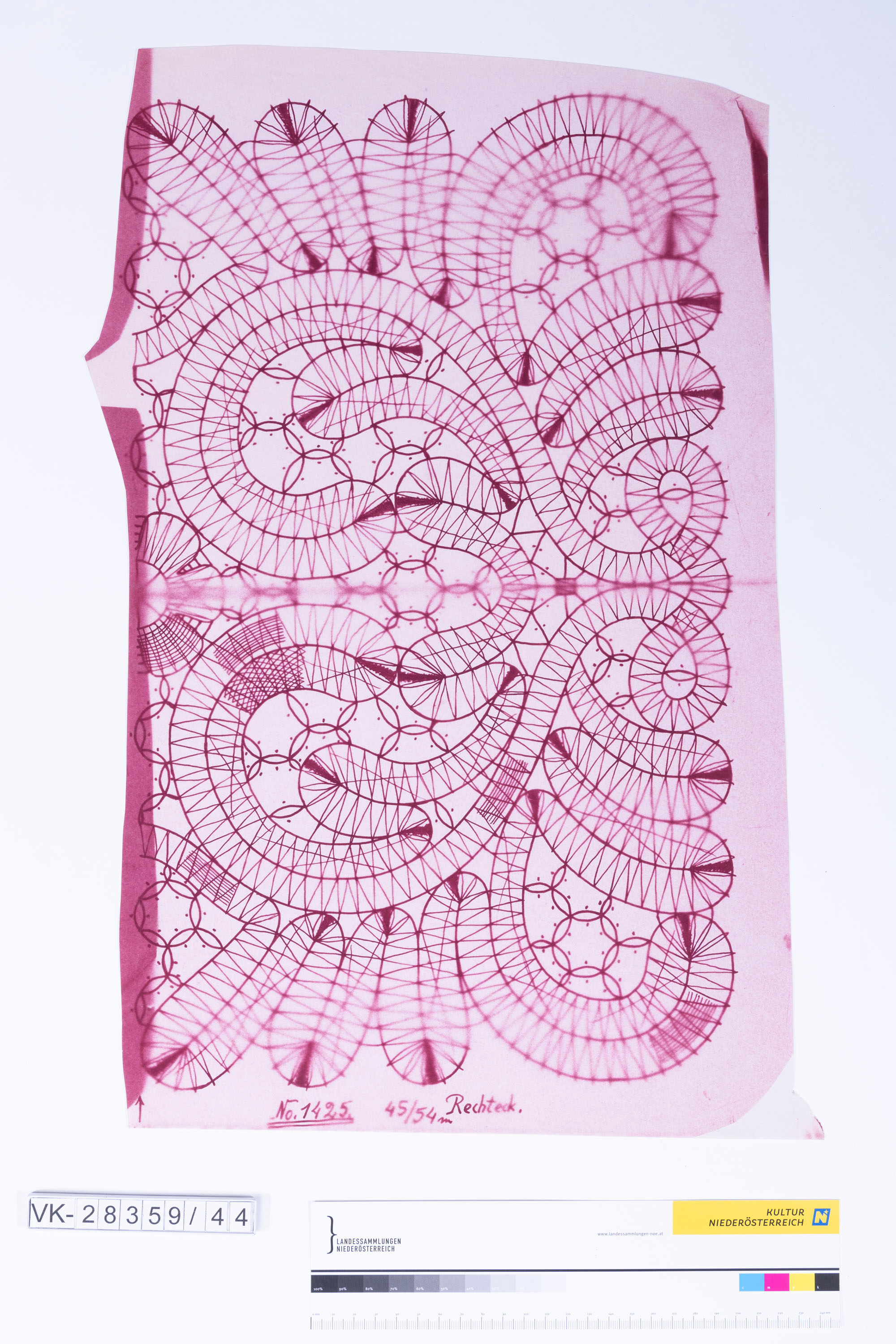 Vorlage für Klöppelbrief mit geschlängeltem Muster: Aufschrift: "No. 1425. 45/54cm Rechteck.