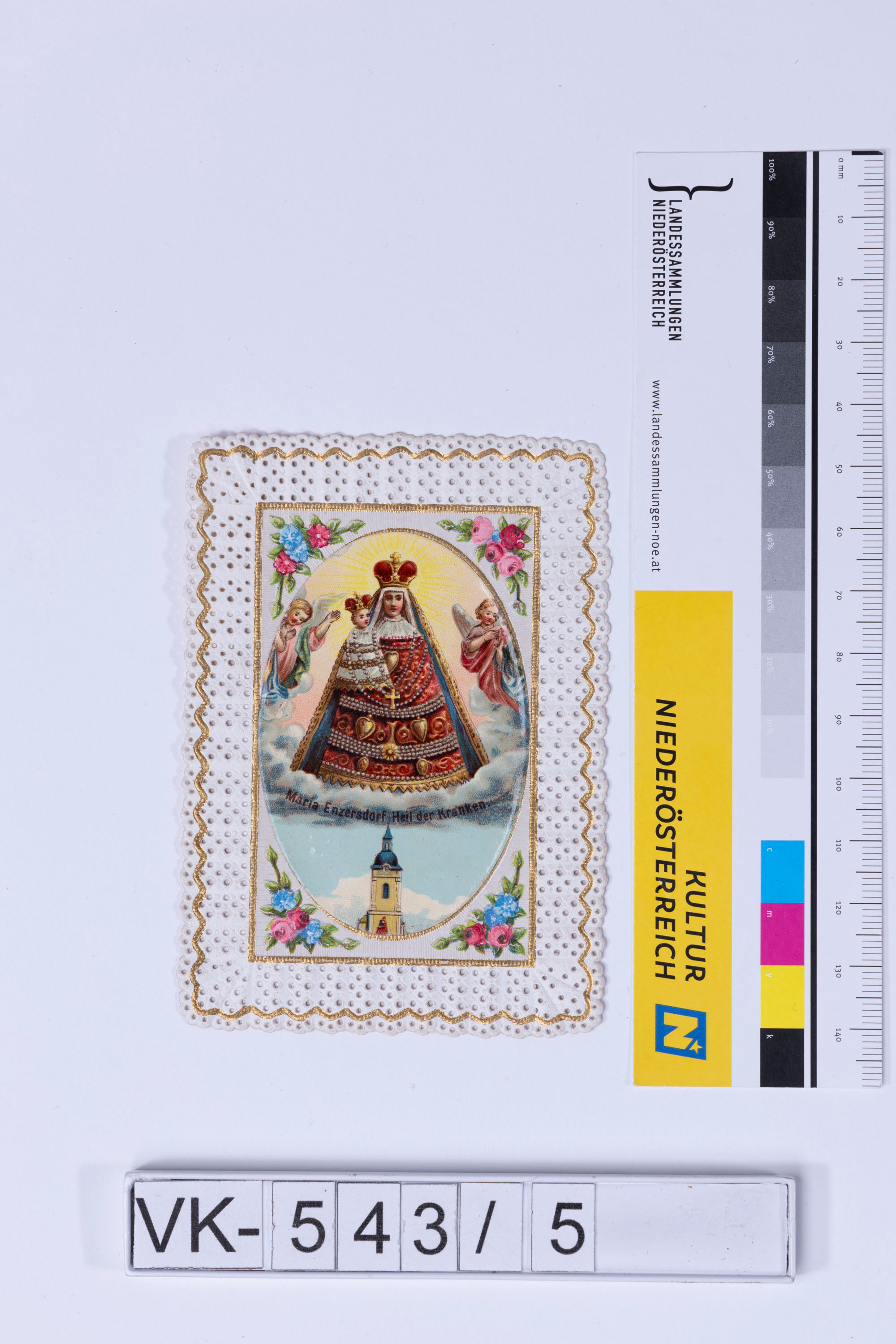 Maria Enzersdorf; Vorderseite: Gnadenbild Maria Enzersdorf, Engel, Kirche; Rückseite: Gebet